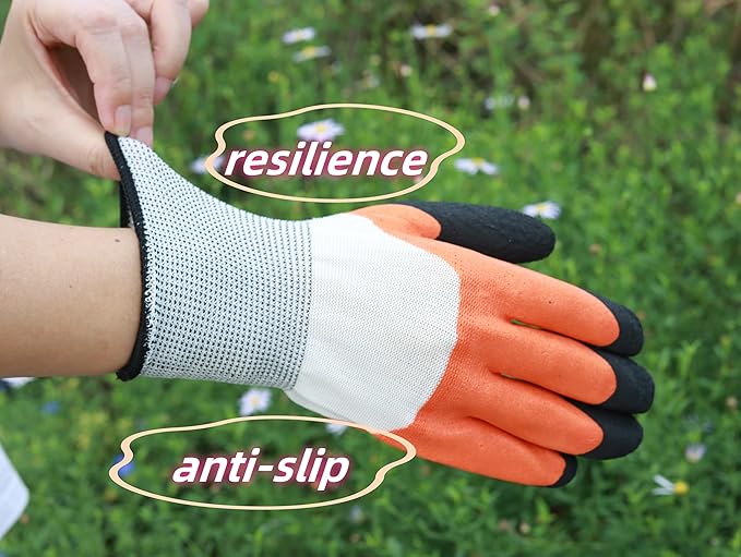 - [Garden Gloves] for Hand Protection: One size fit most. This Gardening gloves, made of nitrile rubber and cotton fabric, can protect yourself from dirt, skin wounds and nasty splinters when doing yard chores. The grip latex coating provides anti-slip or sure control when grabbing garden & yard tools.