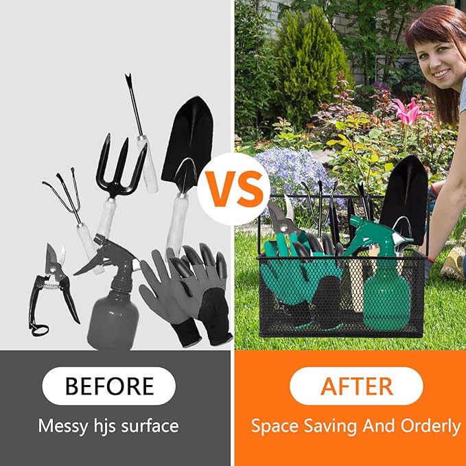 - Durable Carbon Steel Construction: Our garden tool basket is constructed from high-quality carbon steel, offering superior strength and durability. This material ensures that the basket is not only strong but also resistant to rust, providing long-lasting use for all your gardening tasks.