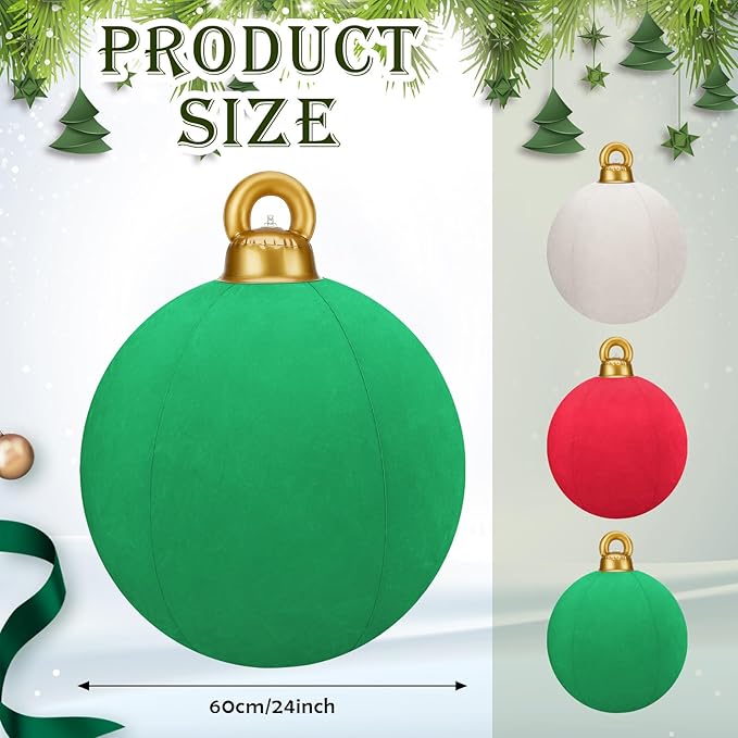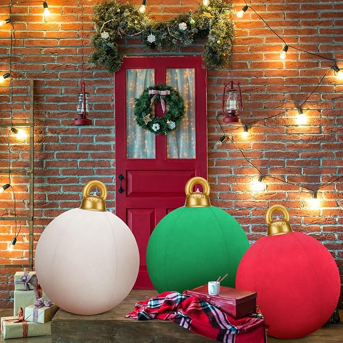 - Easy to Install: the outdoor inflatable velvet Christmas balls are easy and convenient for you to install, simply inflate them with an air pump (not included) from the top at first, then you can decorate your home, garden, yard, porch, or hang them on your front door or window, no assembly is required; Deflate them directly when not in use
