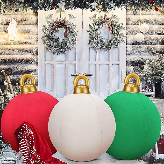 - Large Size: you will receive 3 pieces of inflatable velvet Christmas balls ornaments, featuring 3 colors, such as, red, white, and green, these outdoor PVC Christmas decoration balls measure about 80 cm/ 32 inches before they are inflated, large enough to attract people's attention from a long distance, making your places full of Christmas breath