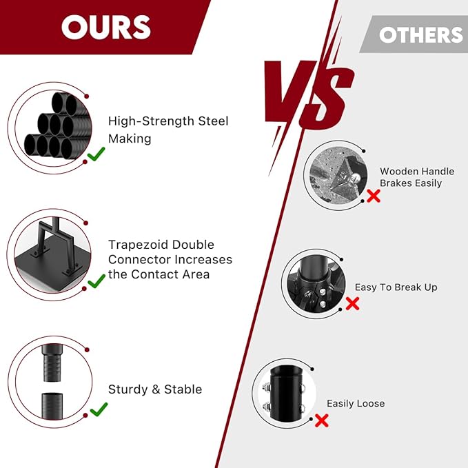 - 【All Steel Tamper Head】 The 10“ x 10” all carbon steel tamper head offers superior strength and durability. Designed for heavy-duty use, it ensures efficient compacting and is ideal for construction, paving, farm labor and other demanding tasks.