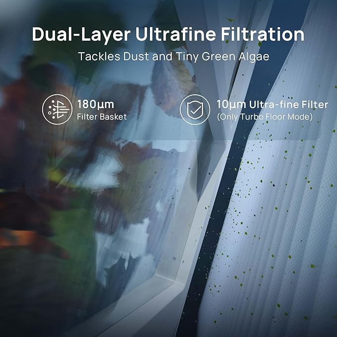 - Dual Filtration System: This pool cleaner boasts a dual filtration system, featuring a 180μm filter basket and an additional HEPA filter. This powerful combination captures and filters out most of pool debris, from fine particles to larger contaminants. The HEPA filtration captures the finest of particles, ensuring your pool water remains exceptionally clean and clear.