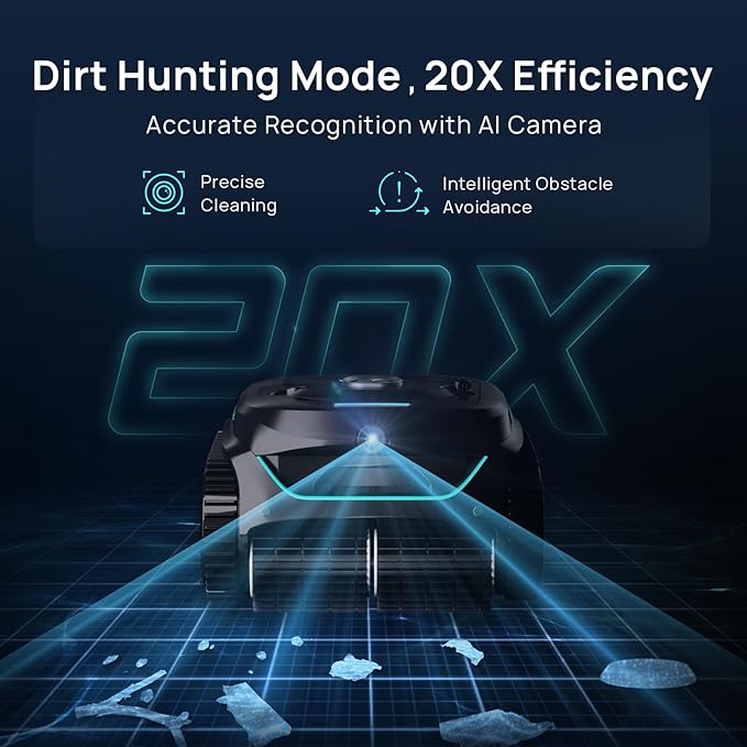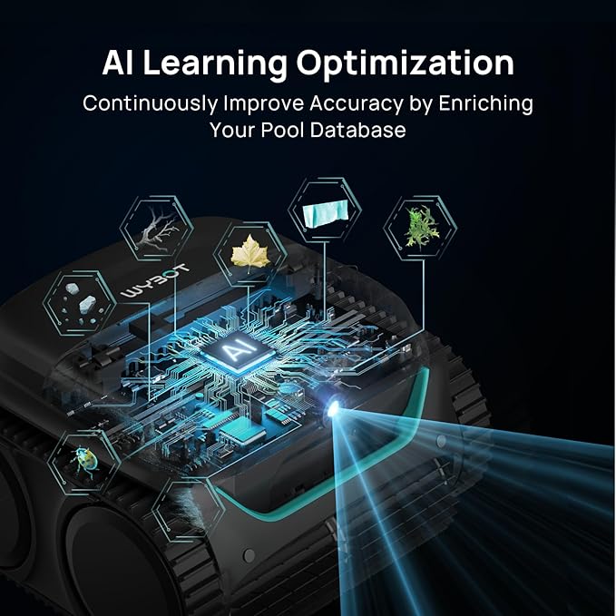 - Customized Pool Database with AI Learning:The AI will learn more debris and obstacle models in the first month, so that it can become your customized and 20x efficient robotic pool cleaner
