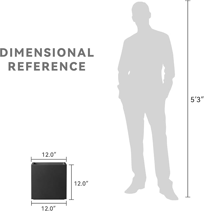 Kante 12 Inch Square Concrete Planter for Outdoor Indoor Home Patio Garden, Large Plant Pot with Drainage Hole and Rubber Plug, Black