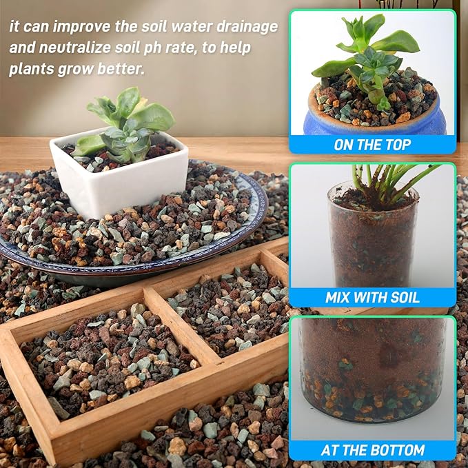 - 【100% Natural Stones】Our 2.4lb stones are mixed of red lava rock, black lava rock, maifanitum, and green zeolite. They are non-toxic, colorfast, and provide essential trace minerals for healthy plant growth.