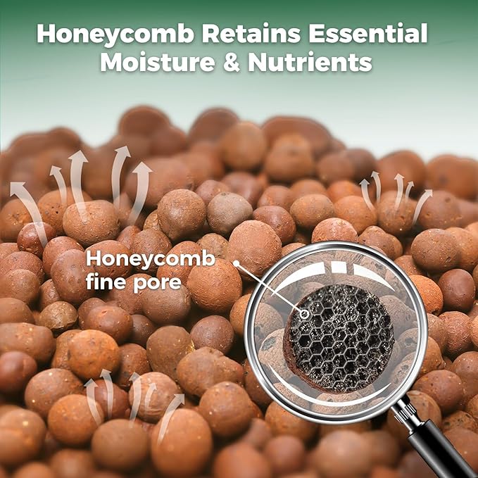 - 🌱【Honeycomb Structure Retains Moisture and Nutrients】T4U clay pebbles for plants retain essential moisture and nutrients, creating a balanced environment for plants to flourish in hydroponics and soil mixes
