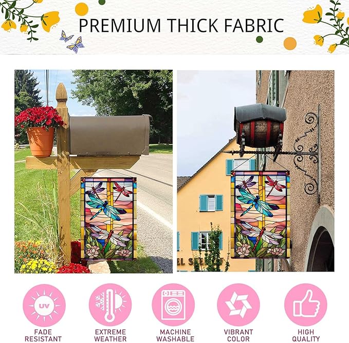 Spring Summer Dragonfly Garden Flag Stained Glass Style Flowers Garden Flag Vertical Double Sided Rustic Farmland Burlap Yard Lawn Outdoor Decor 12.5x18"