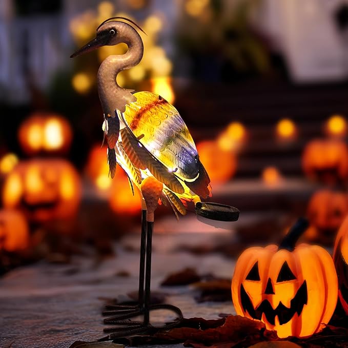 - 【Garden Heron Statue】The Solar Purple Heron Metal Crane Statue exudes a captivating elegance, with its sleek metal outline and unique and charming dusk tone. The intricate detailing of the heron's feathers and posture brings the sculpture to life, making it a stunning addition to any garden or outdoor space