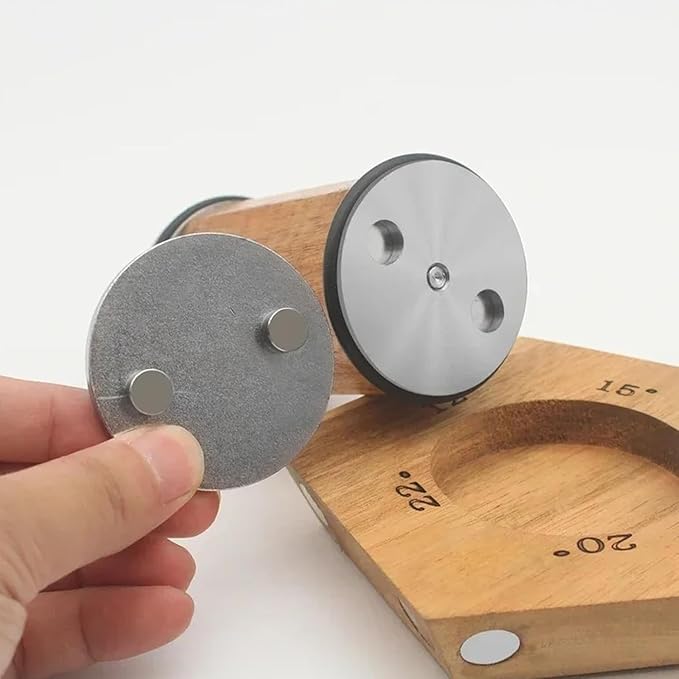 - 【Angle Options】Five angles are available for selection: 12°, 15°, 18°, 20°, and 22°. The powerful magnet can keep the tool at a precise angle to meet the sharpening needs of various knives. For achieving a higher sharpness level on your knives, it is recommended to select a smaller angle for grinding