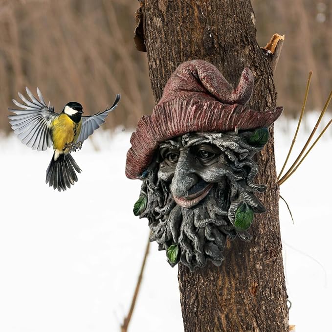 - Whimsical Tree Face: The 'Old Man' garden decor measures 9" x 7" x 2.4" ,Add a touch of charm and whimsy to your outdoor space with these tree face garden statues, these unique decorations are designed to bring personality and character to any tree in your garden,Bring a sense of wonder and enchantment to your yard with this 'Old Man' face tree, with intricate details and a lifelike expression, this tree sculpture is sure to captivate the attention of all who pass by.