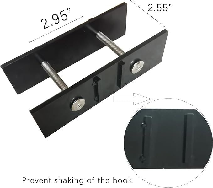 - STURDY AND HEAVY DUTY-Integrated desig make the deck hook more stronger and reliable.The reliable weather-proof powder-coated metal maintains its subtle black color and quality. Adjustable non-slip accommodates railings up to 2 inches thick. Suggested max hanging weight: 20 lbs.