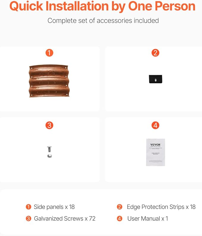 - What You'll Get: Our raised garden bed includes 18 side panels, 18 edge protection strips, 72 galvanized screws, and a user manual.