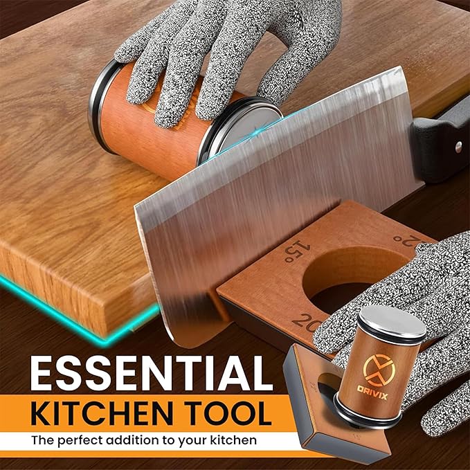 - 𝟒 𝐒𝐡𝐚𝐫𝐩𝐞𝐧𝐢𝐧𝐠 𝐀𝐧𝐠𝐥𝐞𝐬 (𝟏𝟓°, 𝟏𝟖°, 𝟐𝟎°, 𝟐𝟐°): Designed for consistent and accurate sharpening, this system features four preset angles with strong magnets that hold your knife firmly in place, ideal for everything from fine slicing knives to durable utility blades.