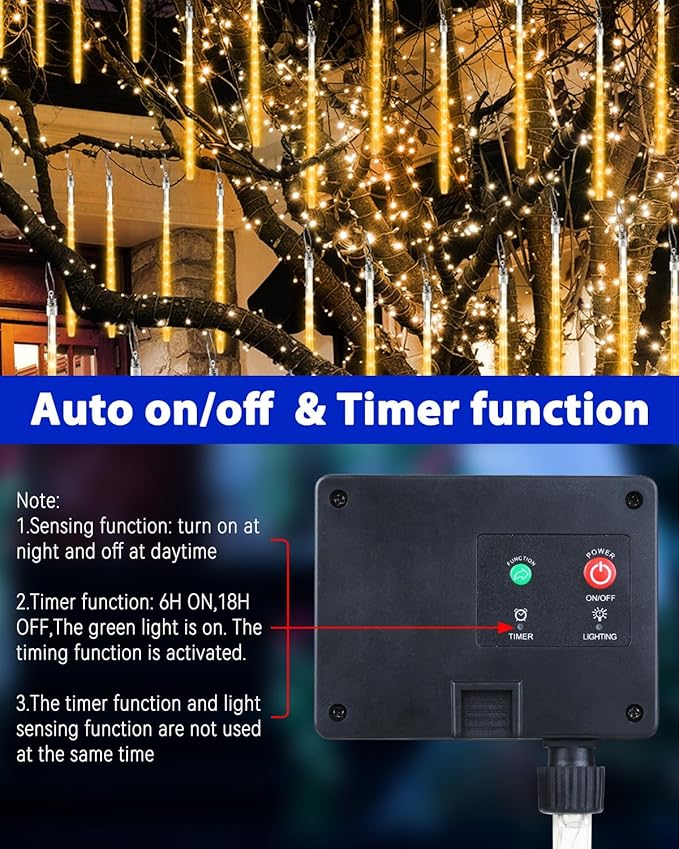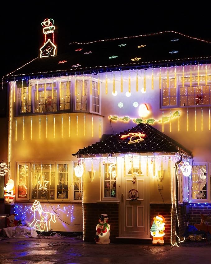 - ✔️ 360° Brilliant Illumination: 24 SMD2835 LEDs per tube with dual-side lighting create dazzling meteor shower effects visible from all angles.