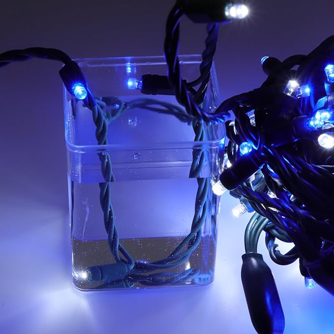 - Long-Lasting: Features 100 blue and cool white 5mm LED wide-angle bulbs spaced 4 inches apart, providing a soft, uniform glow. Bulbs last up to 25,000 hours, with a sealed, one-piece construction that resists moisture and corrosion
