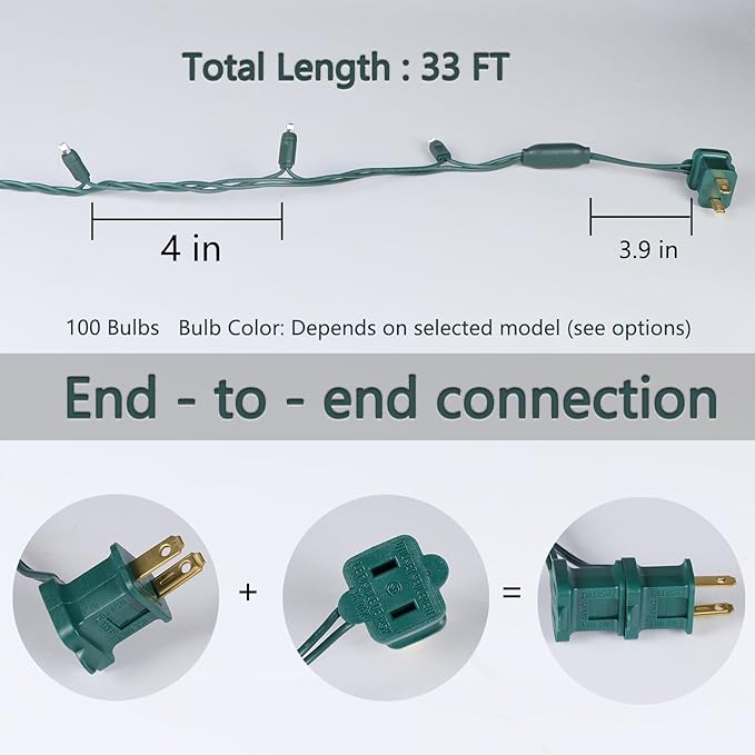 - Size & Connectable: Each 5mm christmas light is 33 feet long, and up to 22 strings can be safely connected end-to-end for a total coverage of 726 feet, ideal for large trees or outdoor spaces