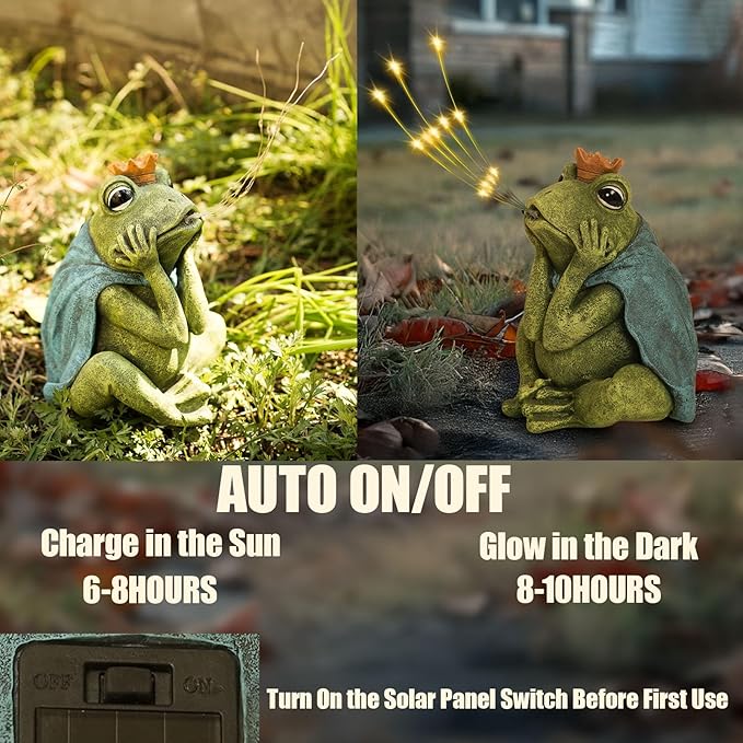 Solar Garden Decor Frog Prince Statue Outdoor, Birthday Gifts for Women Mom Grandma Senior Elder, Frog Ornament for Balcony, Garden, Patio, Yard, Lawn