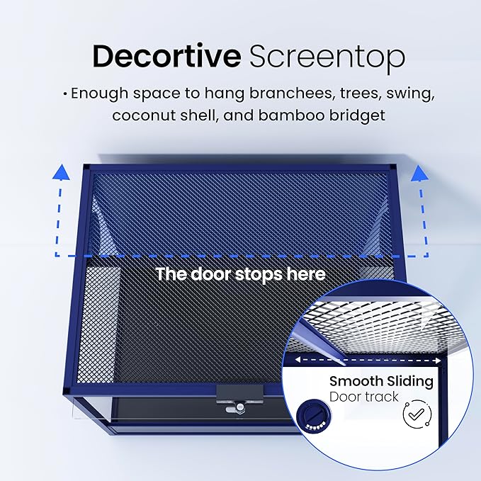 - 【Space Master】Easily flip and slide the door with the handle, tucking it away in the internal track to save space. The door handle can be fixed on the top front bar, to prevent you from being injured by the door falling during feeding and cleaning, and you don't have to worry about leaving fingerprints on the door.