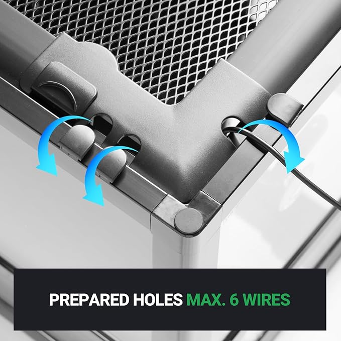 - Ventilated Screen Top with Cable port: Mesh top ensures optimal airflow and ventilation crucial for reptile health. Support various lighting fixtures (heat lamp, UVB, basking lamps). cable ports for tidy wire management.