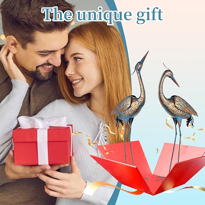 - Metal herons for outdoors vividly designed with crisp textures make them full of vitality. Come with U-shaped spikes for secure placement in gardens.
