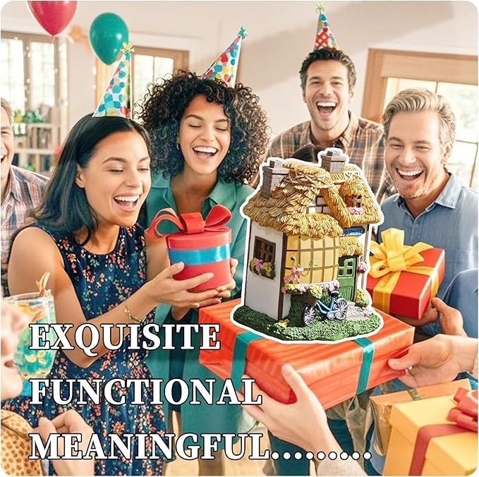 - 【Exquisite Detailing & Accurate Dimensions】 Intricately crafted resin sculpture featuring two chimneys, a parked bicycle, and vibrant spring vines with pink blossoms. Dimensions: 9.06 x 7.68 x 5.63 inches.