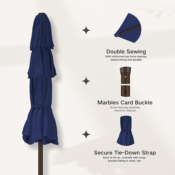 - 【3-Tier Vented Top】Our innovative 3-tier vented canopy is engineered to withstand the winds, preventing the umbrella from tipping over or inverting. Relax and enjoy your outdoor space without worrying about sudden gusts.