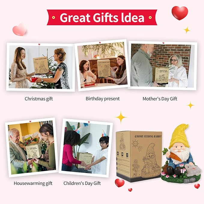 - A Great Garden Gift:The solar garden statue comes in beautifully designed box. the best gift for birthdays, Christmas, Mother's Day, Father's Day, New Year, Thanksgiving, Easter, Valentine's Day. It can be given to Gnome lovers, gardening enthusiasts, lovers, husbands, wives, mothers, fathers, sons, and daughters.