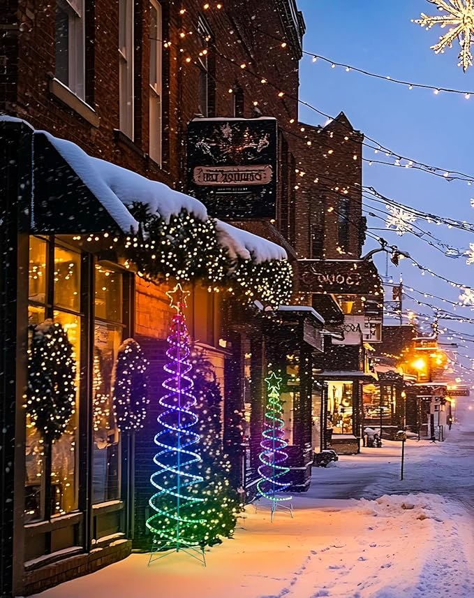 - Double Spiral Design: Ditch boring flat or single-layer style, this outdoor Christmas tree light brings eye-catching 3D flair and quickly becomes a centerpiece of your yard or porch, adding depth to holiday decor with easy setup