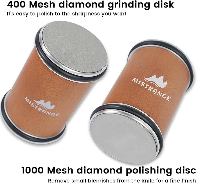 - ✅【Precision Sharpening Made Effortless】The MistRange tumbler knife sharpener revolutionizes blade care with magnetic 15°/20° guides and a diamond-coated roller. Designed as the ultimate knife sharpening kit for kitchens, camping, or gifting, its space-saving design delivers pro-level edges in seconds - no expertise required