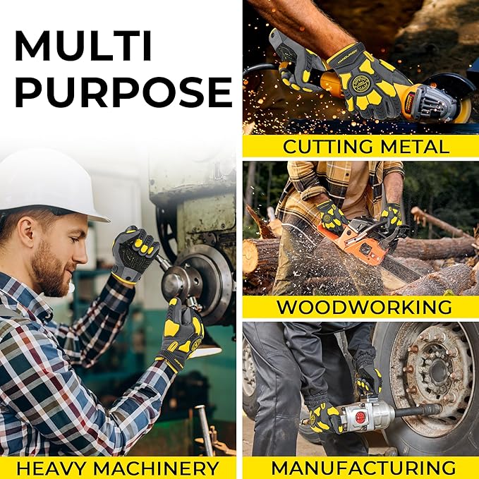 - Impact Protection Work Gloves: HANDPRO TEC anatomically designed Thermoplastic Rubber impact protection extends from the top of your wrist to the tip of each fingers. Wear Resistance Work Gloves: Synthetic leather with PVC reinforcement for abrasion & grip, perfect mix of durability and versatility, last longer with abrasive and heavy work.