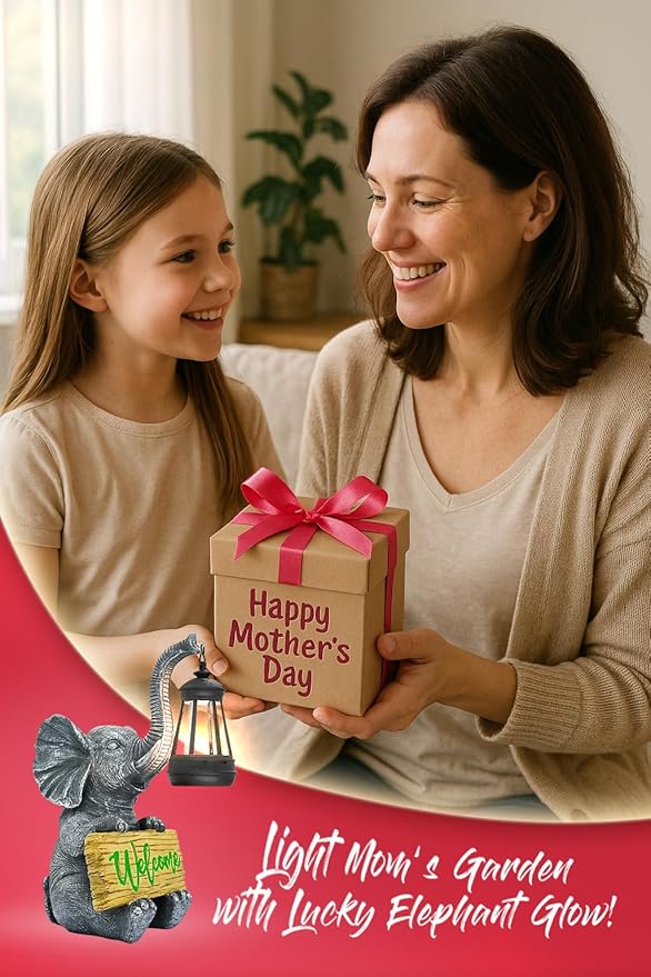 KVR Solar Elephant Garden Lights, Outdoor Welcome Statue Decor for Patio Yard, Birthday Gift for Women Mom Grandma (2025 New Gift Ready) (Green)