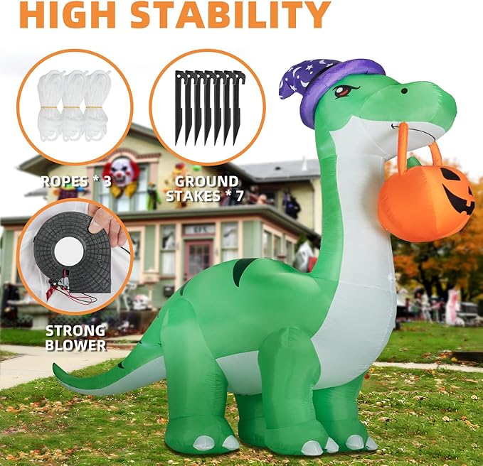 - Giant Size for Outdoor Impact: This 10FT inflatable huge dinosaur makes a bold statement in gardens, lawns, or yards, instantly creating a spooky Halloween vibe as a striking centerpiece.