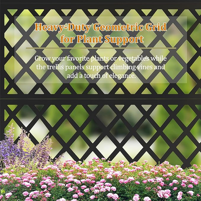 - 🛡️【Outdoor Privacy Screen & Metal Planter Box with Trellis】Use this metal planter box with trellis to create a natural divider on your patio, balcony, or yard. It’s more than just a garden raised bed for climbing plants—it’s also a beautiful metal planter with privacy screen that offers shade and separation. The sleek black frame and vertical lines of this metal planter box with trellis make it both decorative and practical.