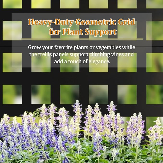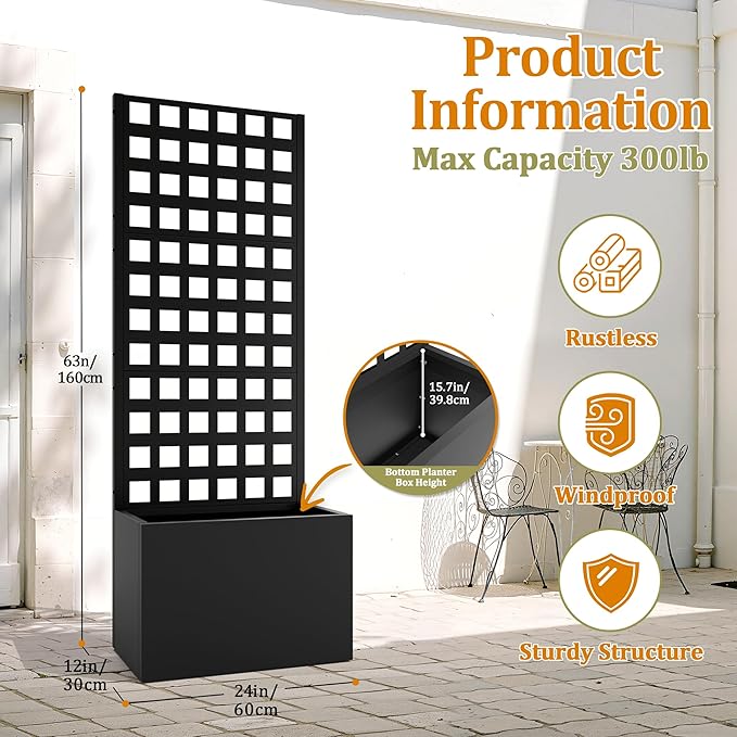 - 🛡️【Outdoor Privacy Screen & Metal Planter Box with Trellis】Use this metal planter box with trellis to create a natural divider on your patio, balcony, or yard. It’s more than just a garden raised bed for climbing plants—it’s also a beautiful metal planter with privacy screen that offers shade and separation. The sleek black frame and vertical lines of this metal planter box with trellis make it both decorative and practical.