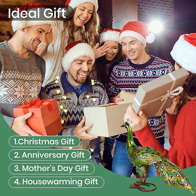 - Weatherproof & Long-Lasting: Crafted from 100% metal, this outdoor peacock statue is built to withstand sun, rain, and wind, providing years of colorful charm whether displayed outdoors or as a unique indoor accent piece.