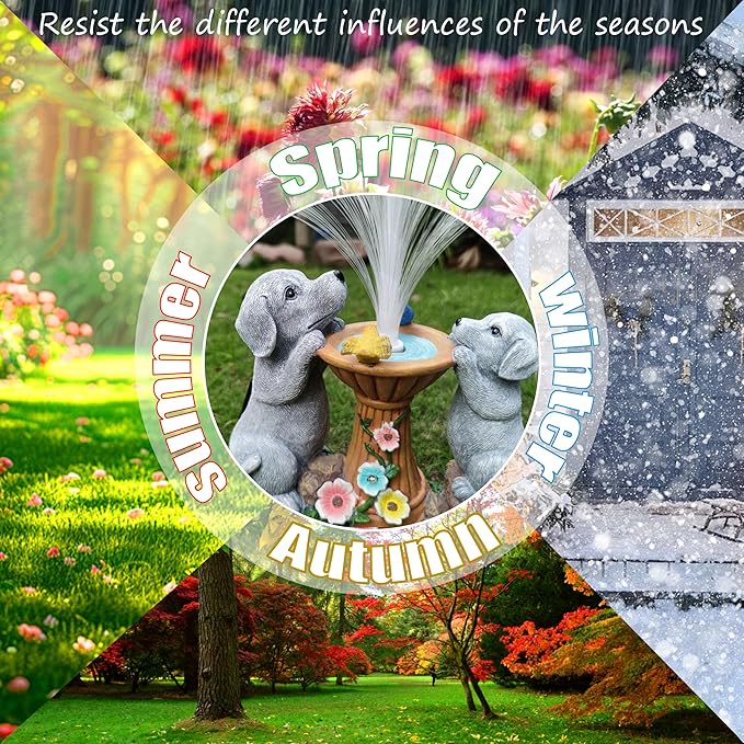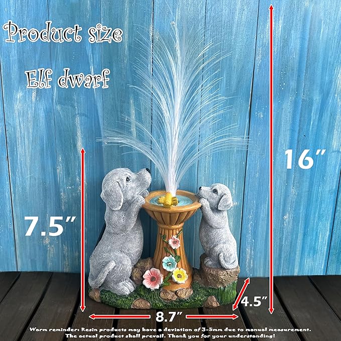 - DECORATIVE DESIGN: Charming garden sculpture featuring two detailed resin dogs admiring a illuminated fountain centerpiece with floral accents