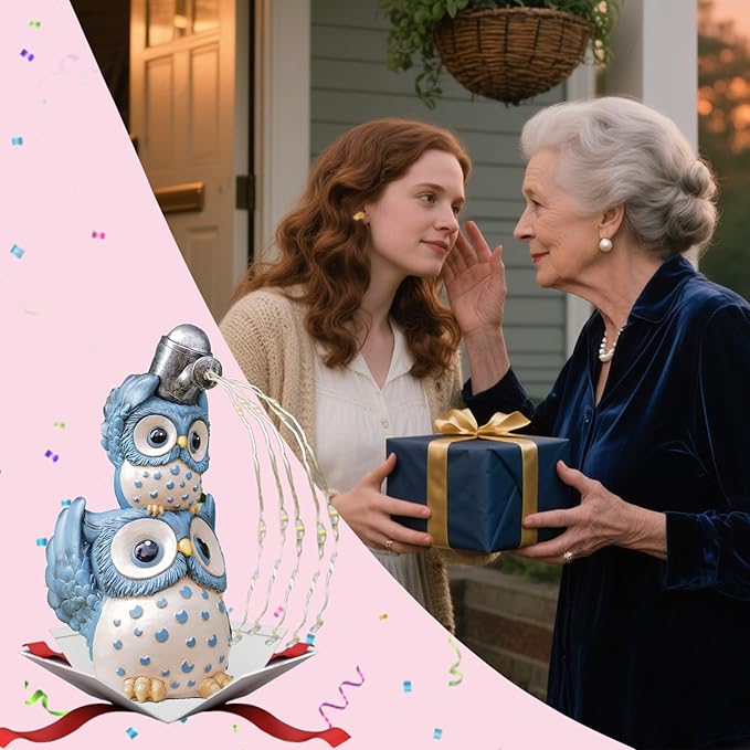 - Funny Owl Garden Statues:Charming owl decor feature a mother owl lifting her baby to water plants, adding warmth and joy to any outdoor space. The twinkling lights mimic flowing water cascading over flowerbeds and lawns, creating a magical effect. Perfect garden decorations for patios, porches, yards, balconies, fences, or walkways, enhancing your outdoor garden decor.