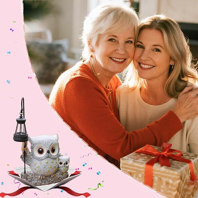 - Funny Owl Garden Statues: Charming owl decor features a mother owl and her baby under a glowing light on a branch, symbolizing protection and companionship. This enchanting piece is perfect garden decorations for patios, porches, yards, balconies, fences, or walkways. It beautifully enhances your outdoor garden decor, creating a warm and inviting atmosphere.