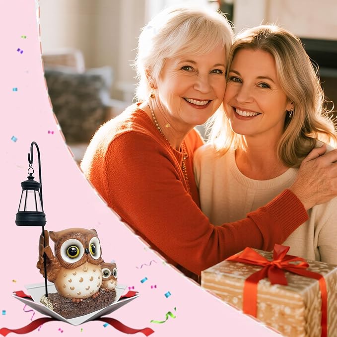 - Funny Owl Garden Statues: Charming owl decor features a mother owl and her baby under a glowing light on a branch, symbolizing protection and companionship. This enchanting piece is perfect garden decorations for patios, porches, yards, balconies, fences, or walkways. It beautifully enhances your outdoor garden decor, creating a warm and inviting atmosphere.