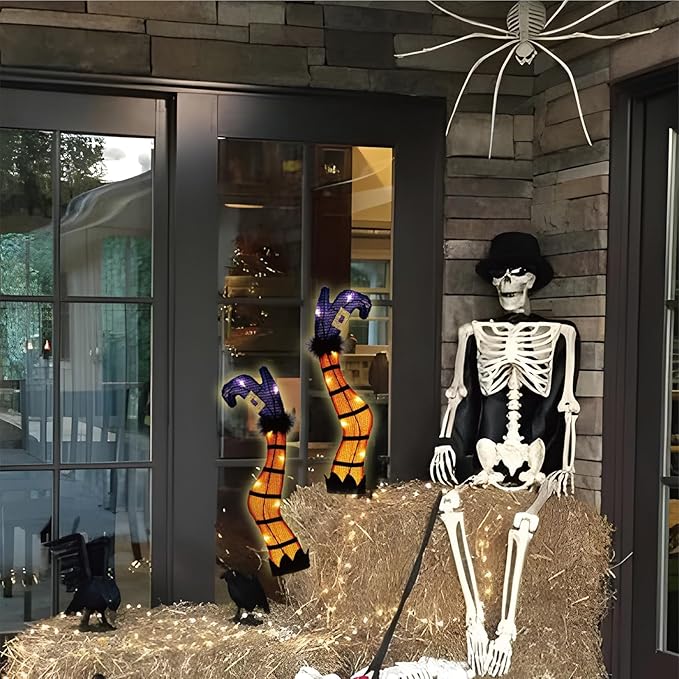 - 💀Easy to Install: Equipped with durable stakes, these witches legs Halloween light up decor can be easily anchored into your lawn or garden, ensuring they stay upright throughout the Halloween season, even in bad weather.