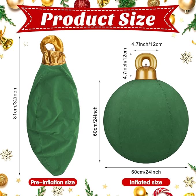 - Easy to Install: the outdoor inflatable velvet Christmas balls are easy and convenient for you to install, simply inflate them with an air pump (not included) from the top at first, then you can decorate your home, garden, yard, porch, or hang them on your front door or window, no assembly is required; Deflate them directly when not in use
