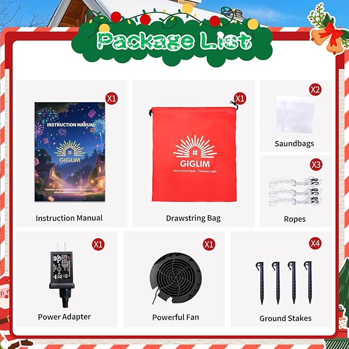 - 🎄【Christmas Tree Inflatable That Lights Up the Night!】This christmas tree inflatable has 5 built-in lights—strategically placed to glow like magic once plugged in! They highlight every cute detail, turning your decor (even a christmas tree blow up paired with it) into a nighttime stunner. Dark evenings won’t dim the vibe—its outline stays clear, keeping your Christmas cheer bright and eye-catching!