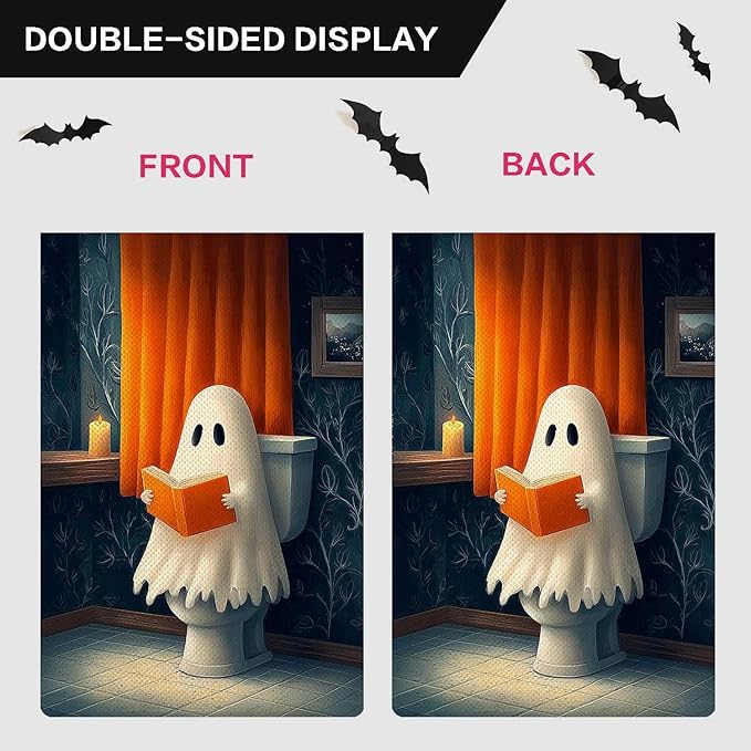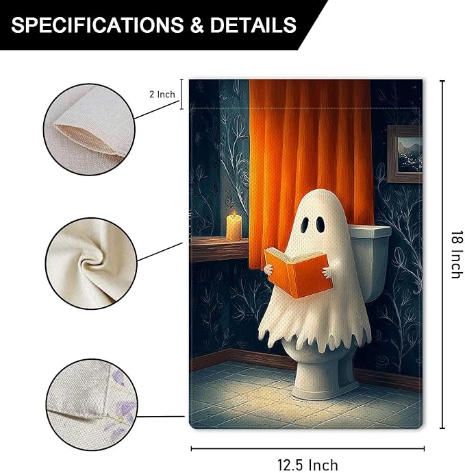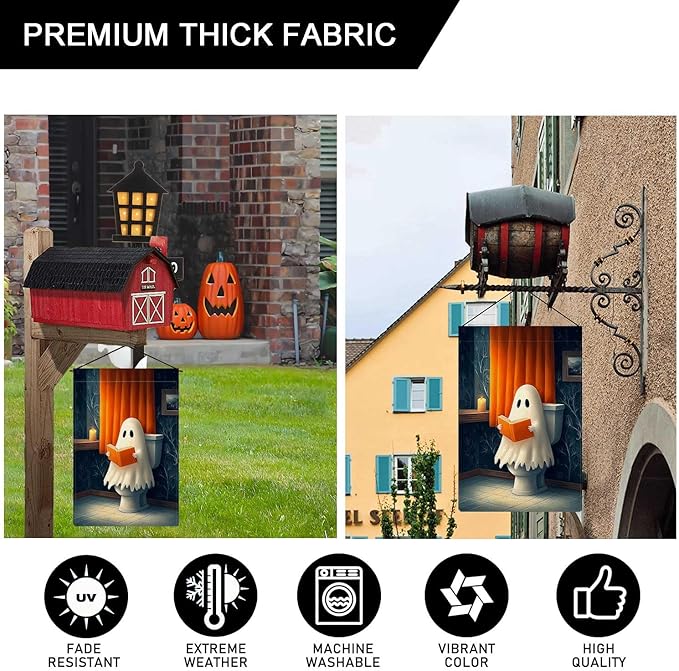 Vintage Cute Ghost Reading on Toilet Garden Flag Halloween Holiday Garden Flag Vertical Double Sided Rustic Farmland Burlap Yard Lawn Outdoor Decor 12.5x18"