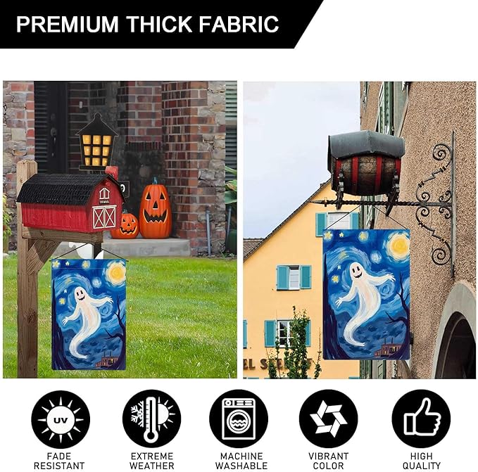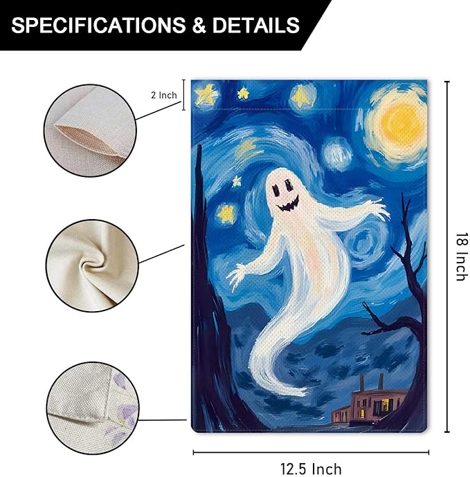 Starry Night Ghost Garden Flag Halloween Holiday Garden Flag Vertical Double Sided Rustic Farmland Burlap Yard Lawn Outdoor Decor 12.5x18"