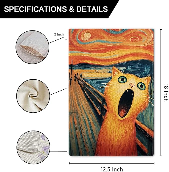 Screaming Orange Cat Garden Flag The Scream Halloween Garden Flag Vertical Double Sided Rustic Farmland Burlap Yard Lawn Outdoor Decor 12.5x18"
