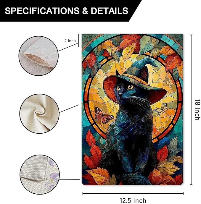 Halloween Wizard Cat Garden Flag Stained Glass Style Holiday Garden Flag Vertical Double Sided Rustic Farmland Burlap Yard Lawn Outdoor Decor 12.5x18"