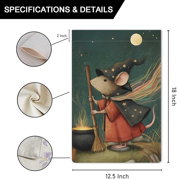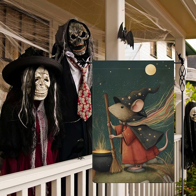 Witchy Rattie Garden Flag Halloween Holiday Garden Flag Vertical Double Sided Rustic Farmland Burlap Yard Lawn Outdoor Decor 12.5x18"