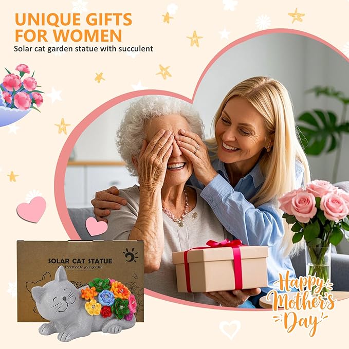 - Perfect Garden Gift: This hand-painted solar cat garden statue is the perfect gift for cat lovers and women. It's ideal for holidays like Mother's Day, Father's Day, Thanksgiving, Christmas, birthdays, housewarmings, and Easter. It's more than just a cat decor—it's a daily source of joy! Brighten any occasion with our charming solar garden cat statue!