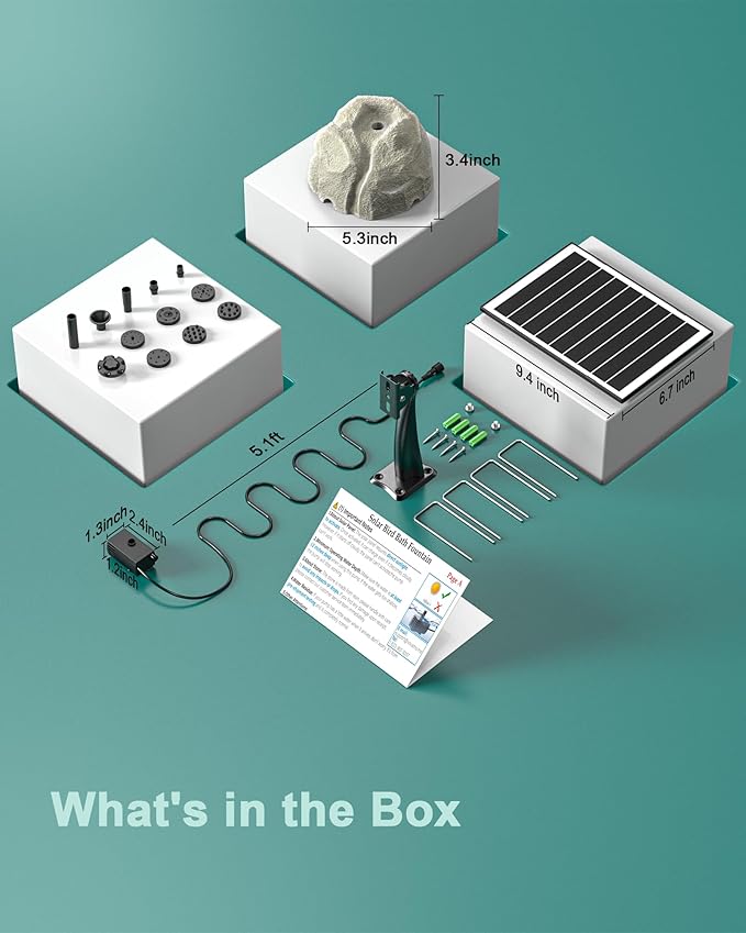 - 𝐀 𝐓𝐡𝐨𝐮𝐠𝐡𝐭𝐟𝐮𝐥 𝐆𝐢𝐟𝐭 𝐟𝐨𝐫 𝐄𝐯𝐞𝐫𝐲 𝐂𝐞𝐥𝐞𝐛𝐫𝐚𝐭𝐢𝐨𝐧:This rock bird bath solar fountain is an exceptional gift choice! It serves as a delightful outdoor decoration, bringing charm to gardens and patios, while also elevating the aesthetics of aquascaping in small pond. Surprise your friends and family with a considerate present that adds beauty and joy to any setting!