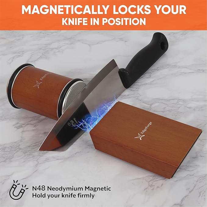 - Secure & Stable - The kitchen knife sharpener's N42 magnets hold your knife securely in place during sharpening, while the non-slip base keeps everything steady - safe, stable, and slip-free.